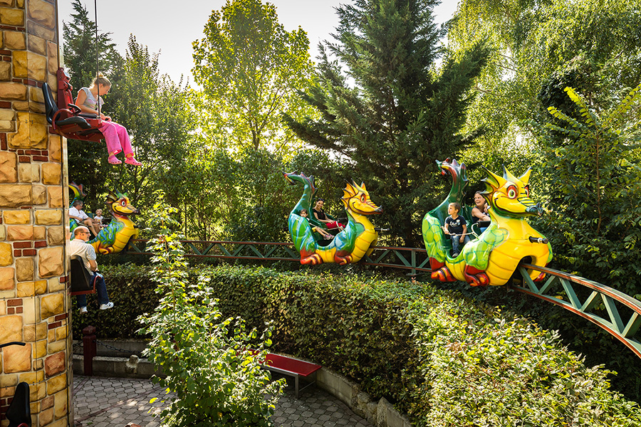 Hoch über den Köpfen der anderen Besucher dreht ihr eine Runde durch einen Teil der Erlebnisburg. Aber wer jetzt glaubt er kann sich entspannt zurücklehnen, der irrt. Damit sich die freundlichen Drachen in Bewegung setzen, müsst ihr fest in die Pedale treten.