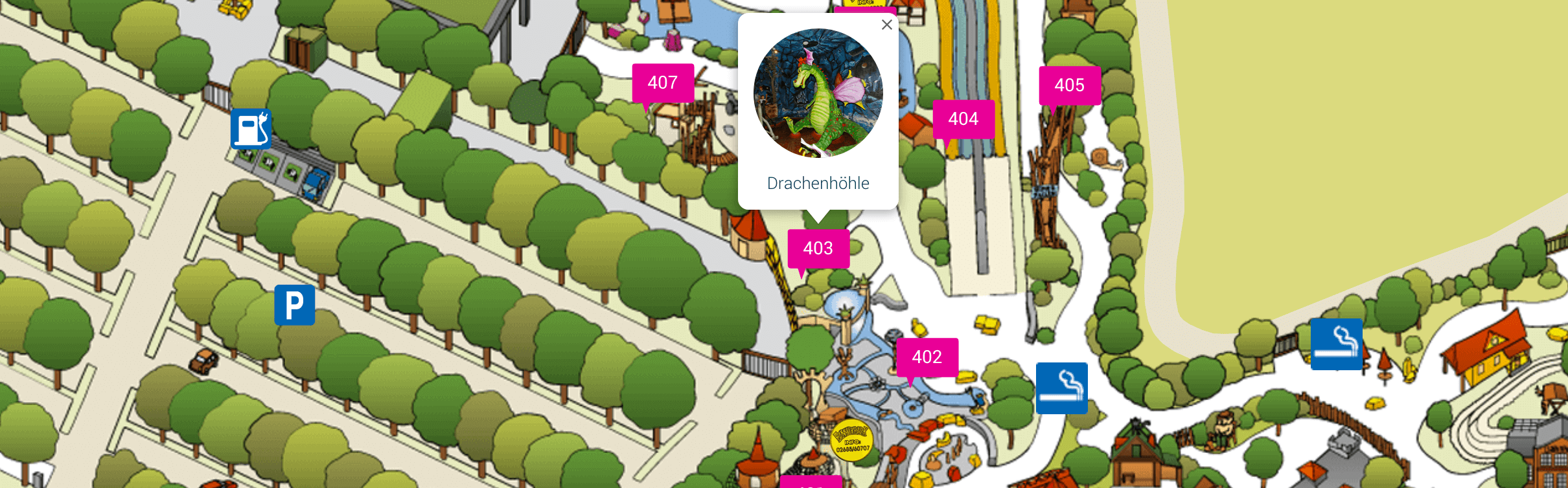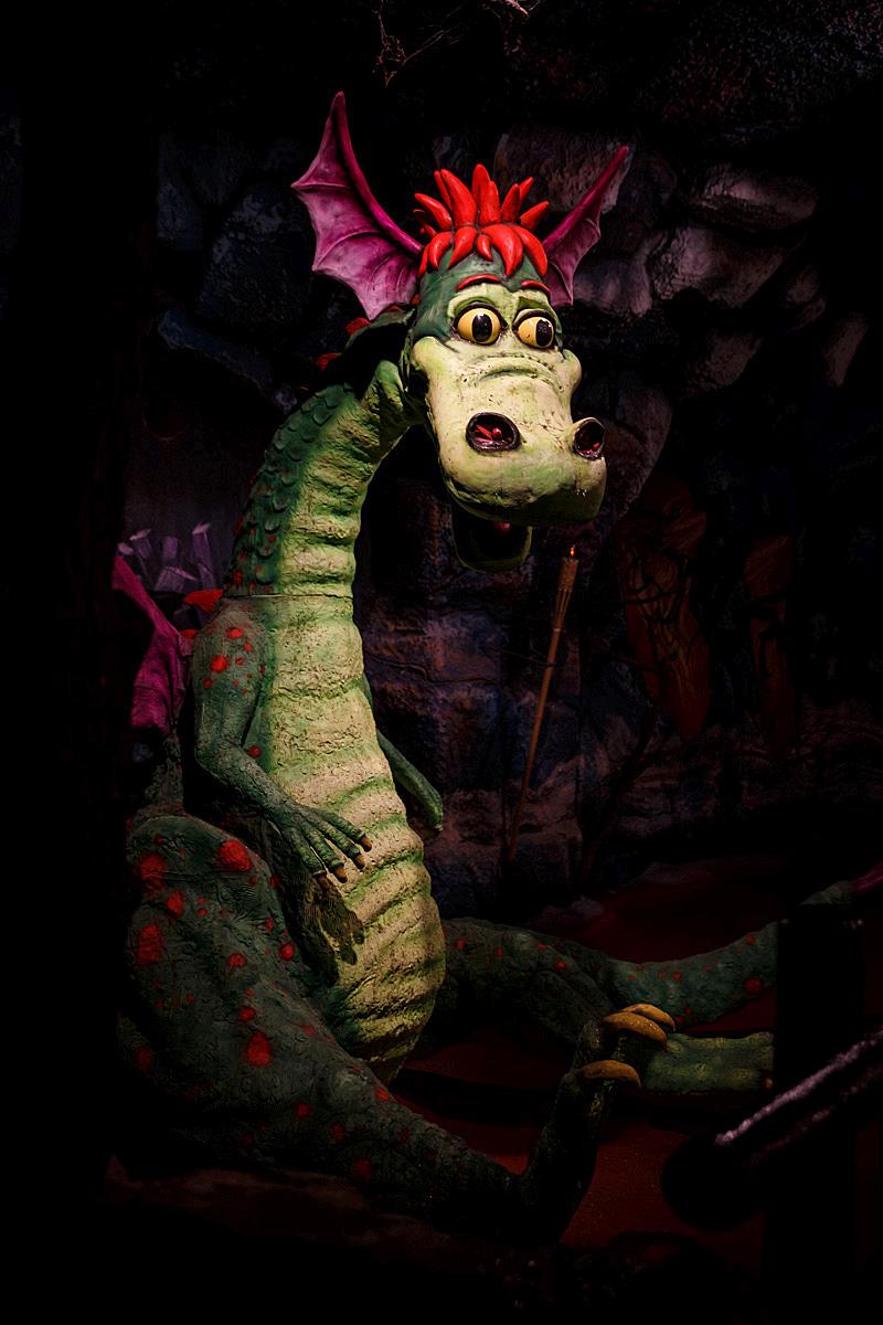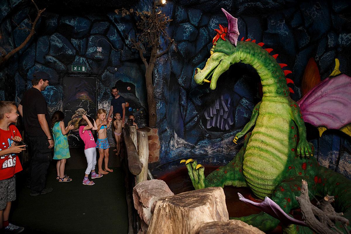 Versteckt hinter dem großen Wasserfall bei Neptuns Wasserwelt, wohnt der Hausdrache des Familyparks, Dragomir Schwefelstein. Ihr könnt ihn jederzeit in seiner Höhle besuchen. Keine Angst, meistens schläft er und wenn er doch einmal wach wird, ist er sehr nett.