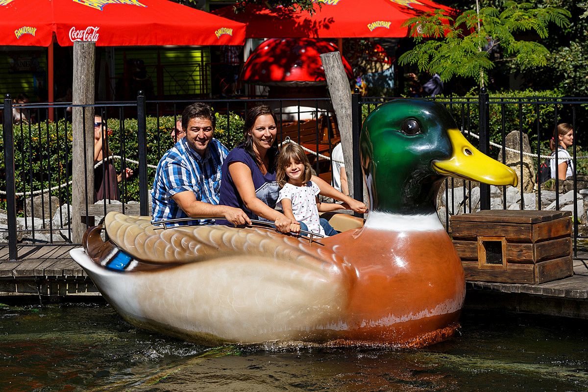 Im Teich neben dem Filippo Restaurant haben die Enten der Entenparade ein schönes Zuhause gefunden. Sie nehmen euch auf ihrem Rücken mit und schwimmen ein paar gemütliche Runden um die Seerose.
