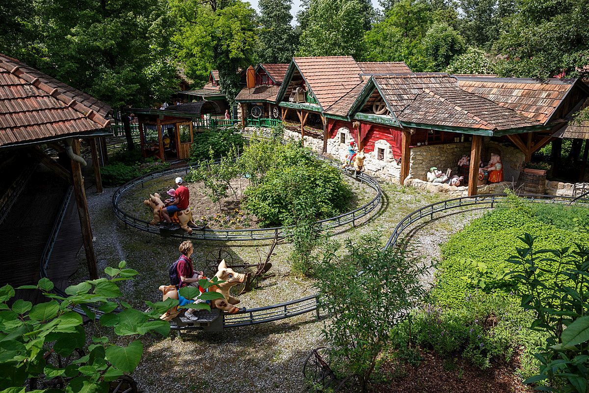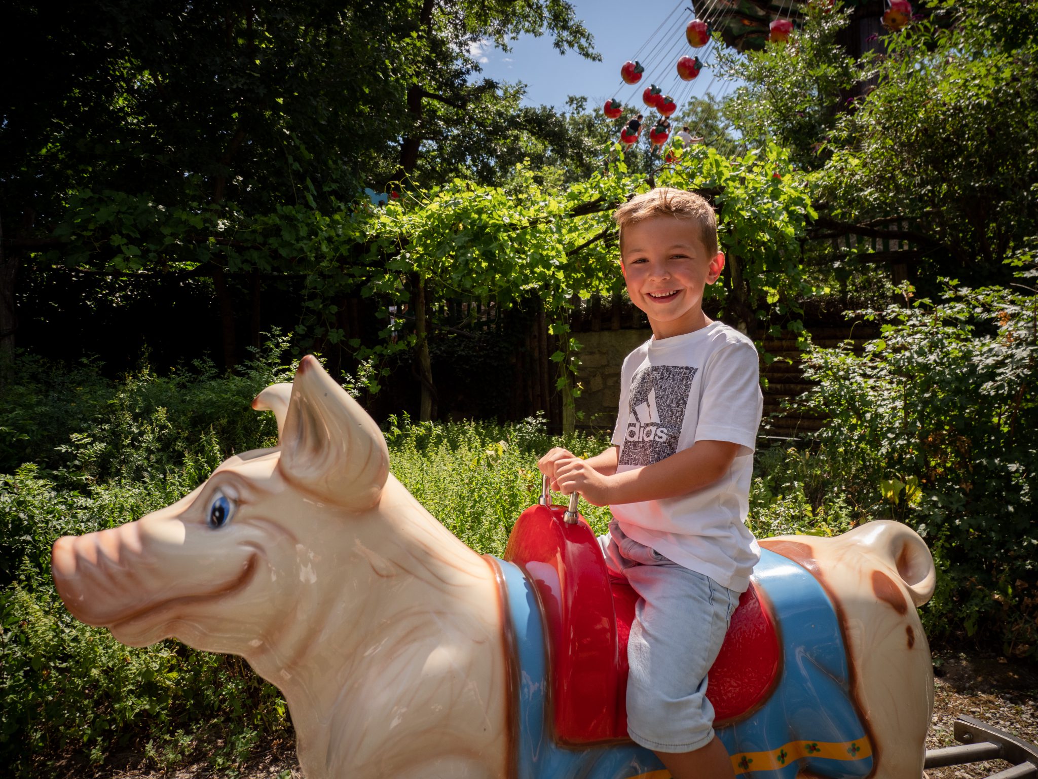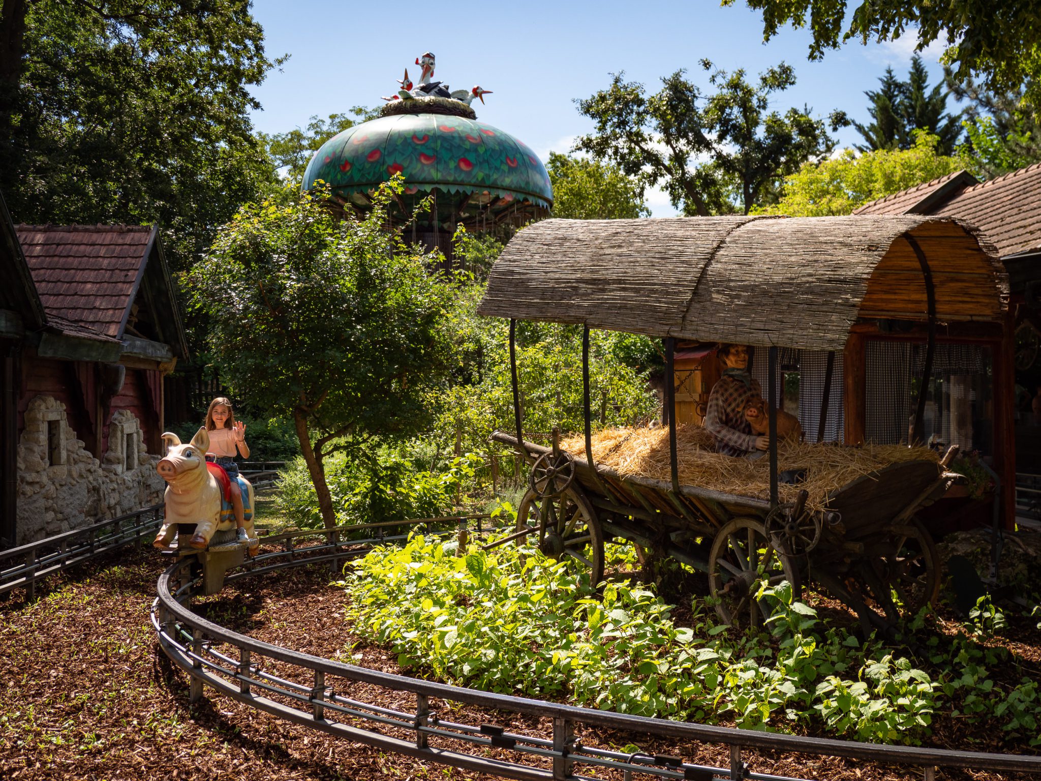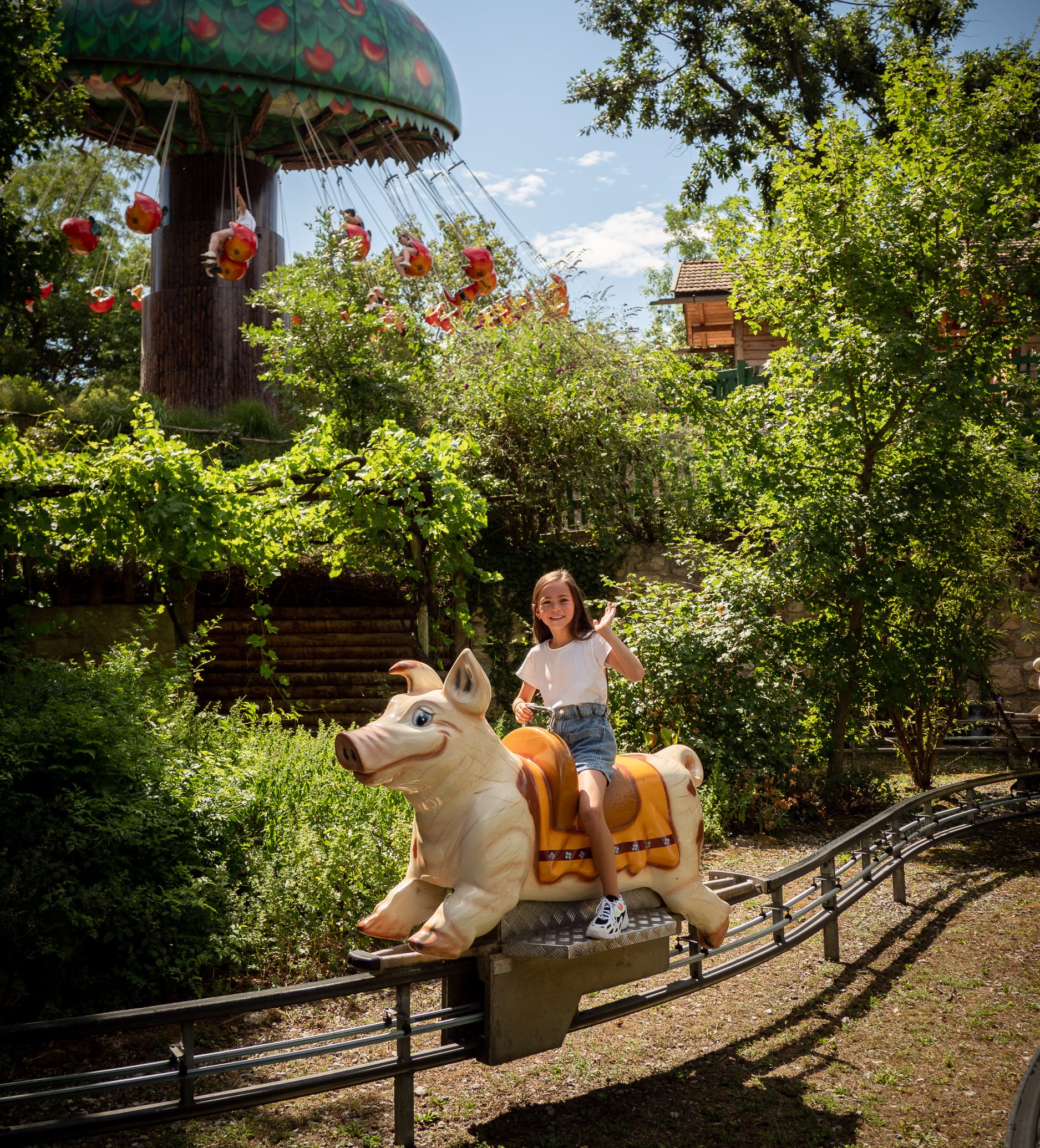 Die Schweine sind los! Im flotten Schweinsgalopp geht es vorbei am singenden Bauernjungen, Himbeersträuchern und durch die schattige Weinlaube. Hier heißt es gut festhalten – mit lautem Gequieke durch die Beete!