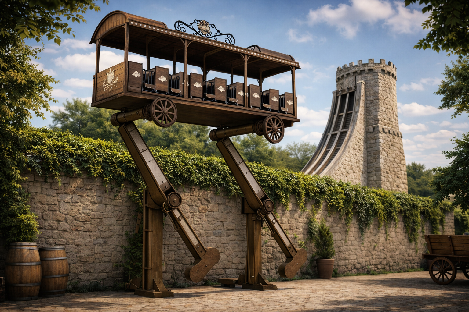 Mit dem Wilden Winzer wartet eine schwungvolle Fahrt für junge Entdeckerinnen und Entdecker. In einem urigen Holz-Wagen geht es fröhlich auf und ab. Fässer, Kutschenflair und viele liebevolle Details machen die Attraktion auf der Abenteuerinsel zu einem stimmungsvollen Erlebnis für die ganze Familie.