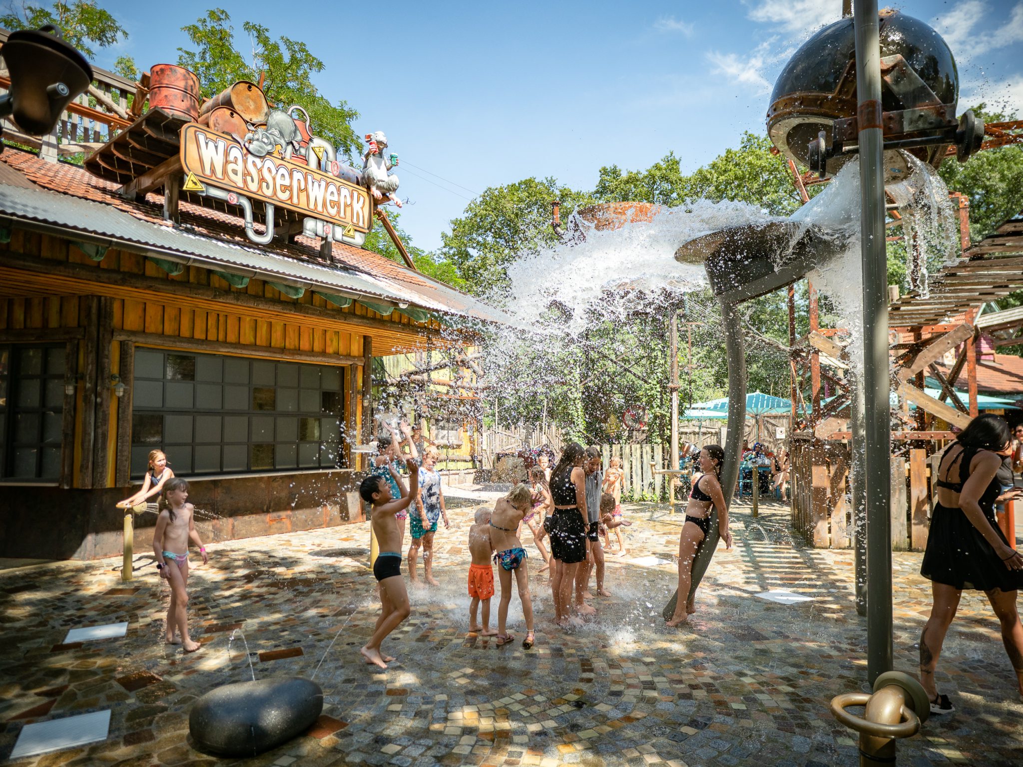 Looking for a cool down? At the waterworks you are at the perfect place to be. On more than 250 m² fountains, floor jets and interactive games provide water fun. But watch out! Your friends can target you with the water cannons!