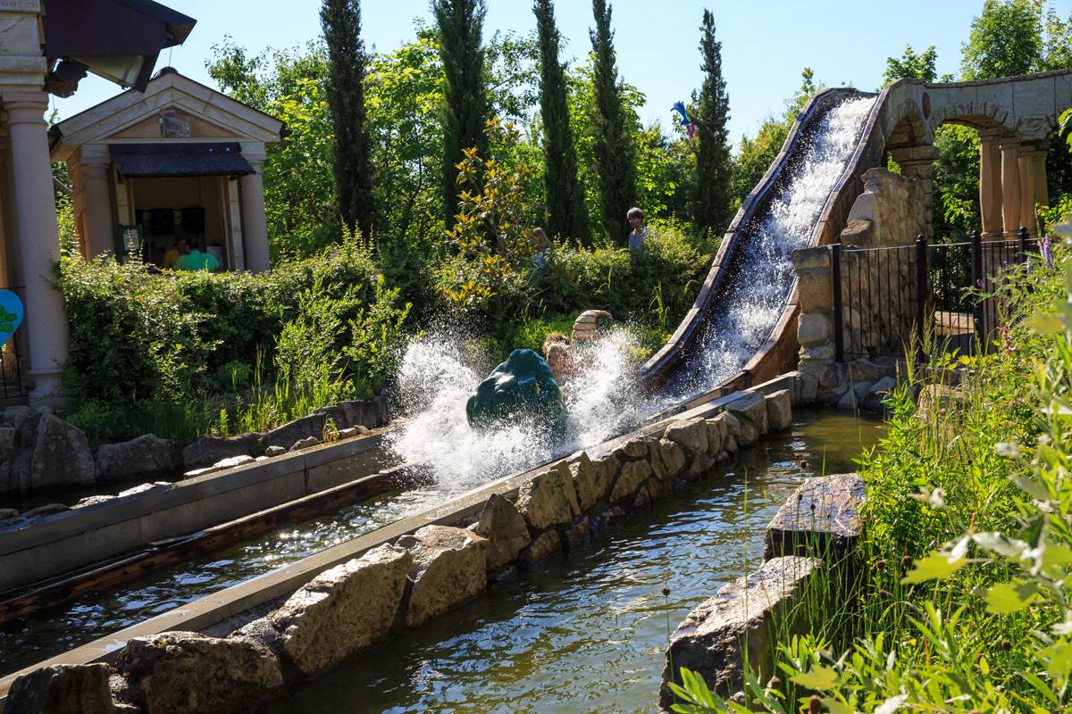 Cruise leisurely along the canal in a crocodile-shaped water flume. Then, take the lift to the aqueduct, before shooting down and making a big splash in the water below.