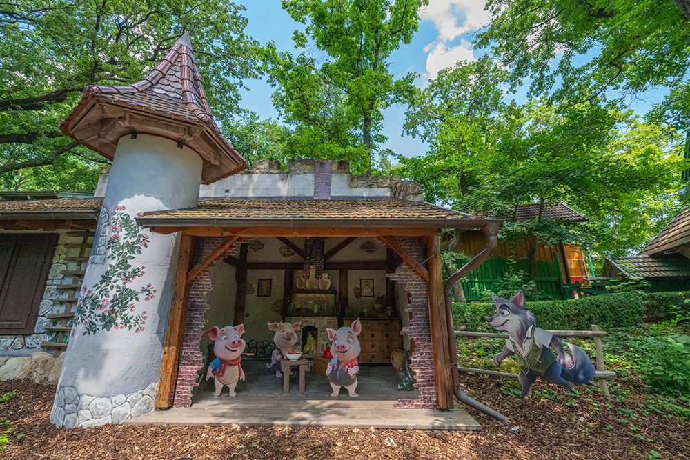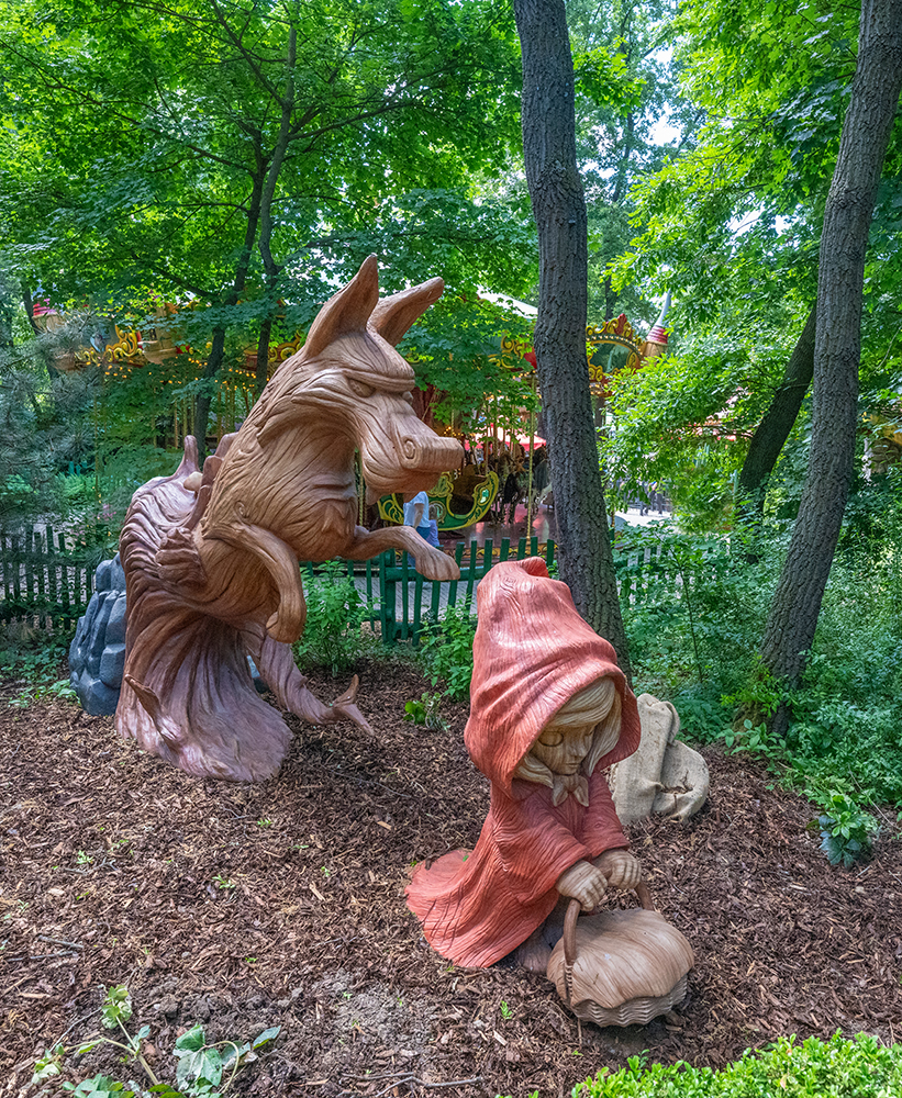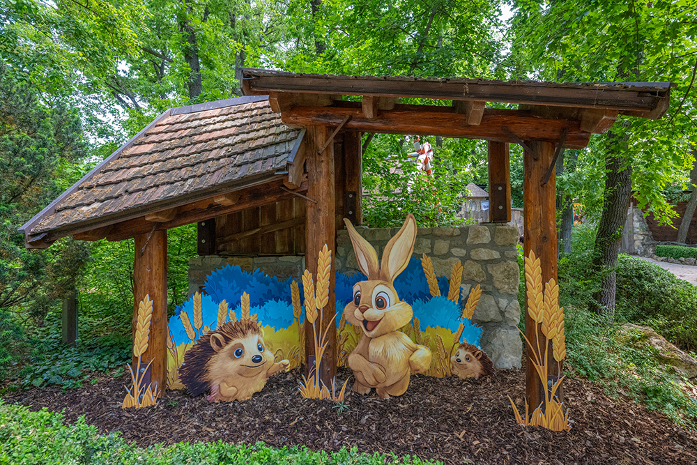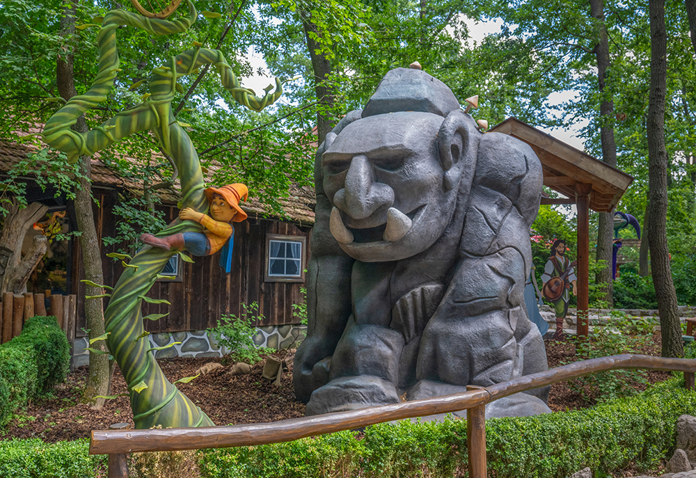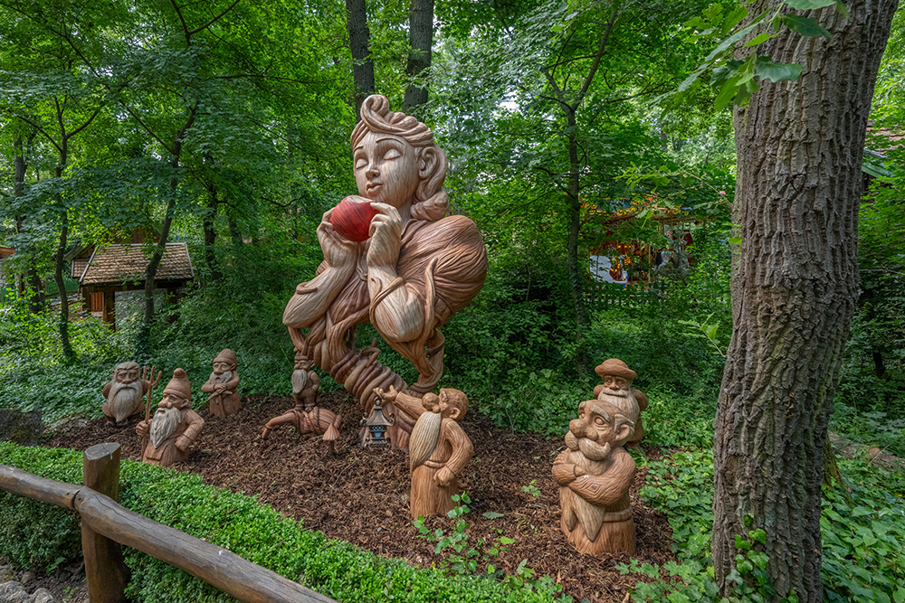 The fairytale forest is the quiet zone of the Familypark. Here you can stroll through an idyllic forest & discover well-known fairy tales. The highlight of the fairytale forest are the three XL 3D figures of Snow White & the 7 Dwarfs, Little Red Riding Hood & Hans and the Beanstalk, while the Quarrelsome Peasants and the Bird Wedding have been very popular for many years.