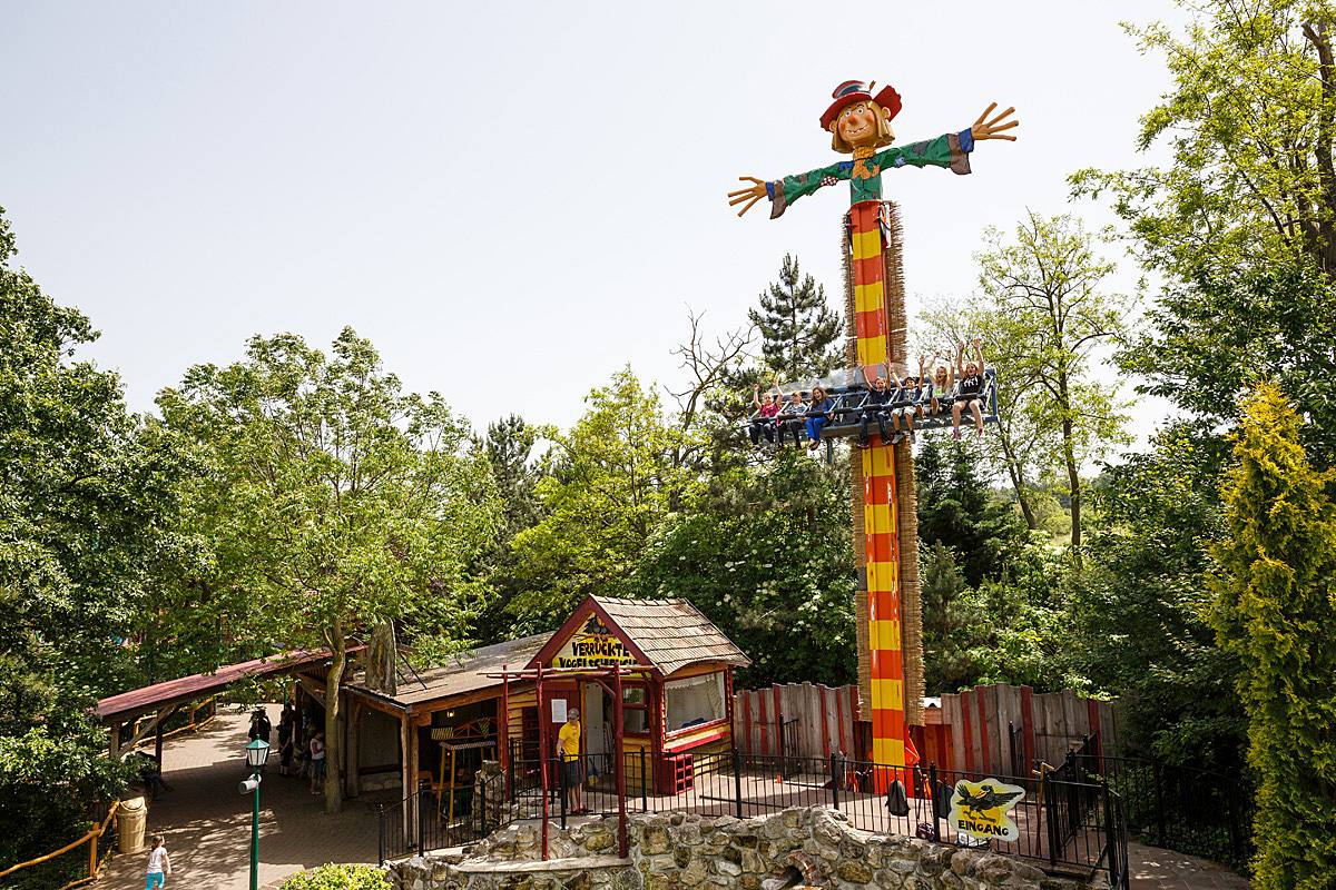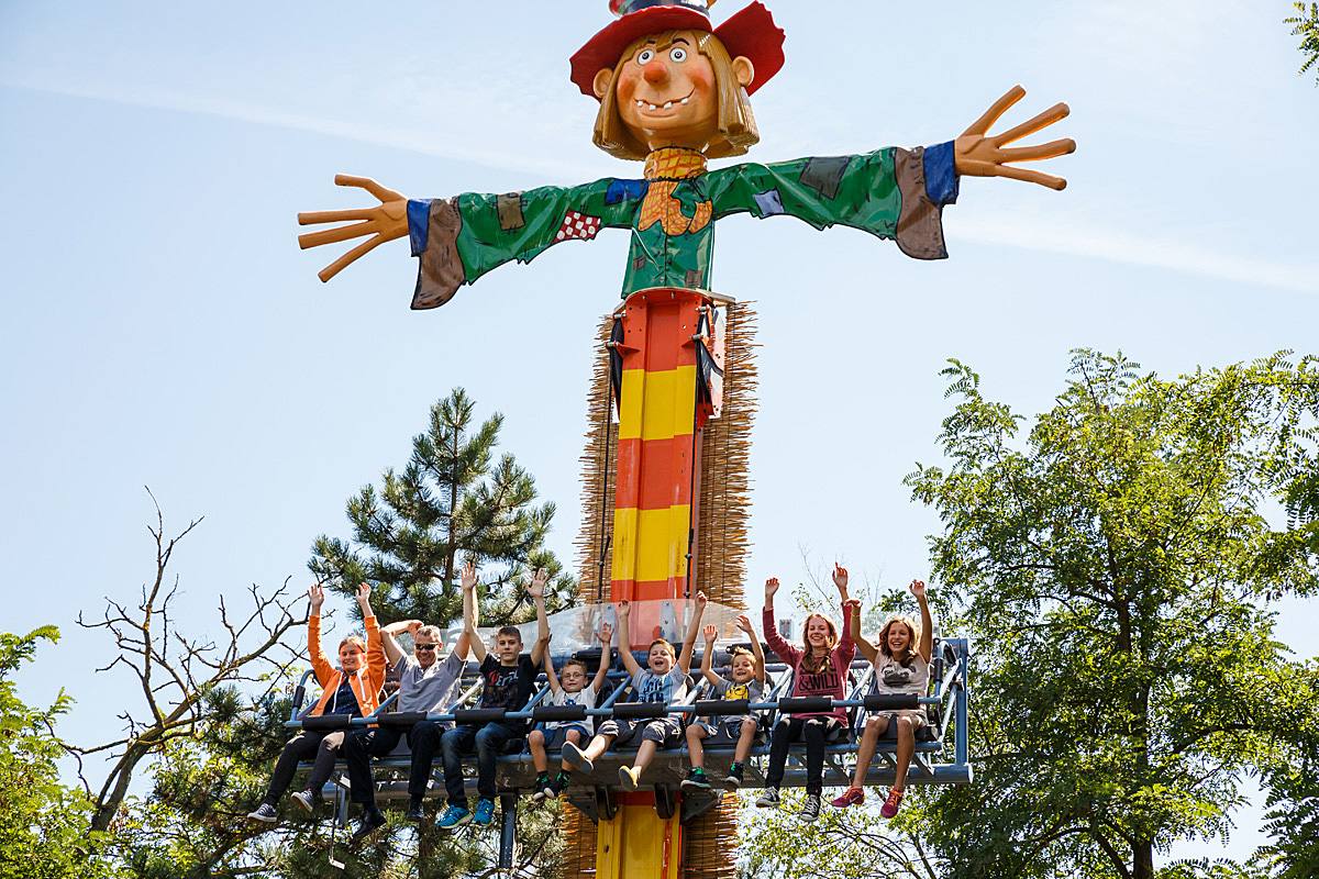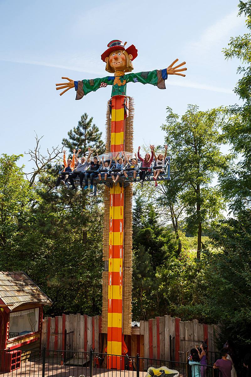 On the Scarecrow (Verrückte Vogelscheuche), you are taken on a startingly bonkers ride – initially yanked upwards and then precipitously off the cliff in apparent free fall then jerked into the heavens again. As if that is not enough, our scarecrow leans from side to side. Not a hair will stay in place!
