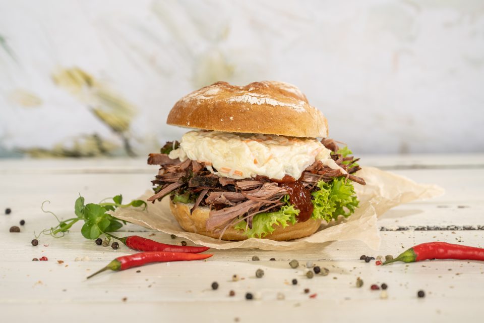 Pulled Pork Burger vom Wildschwein mit Coleslaw