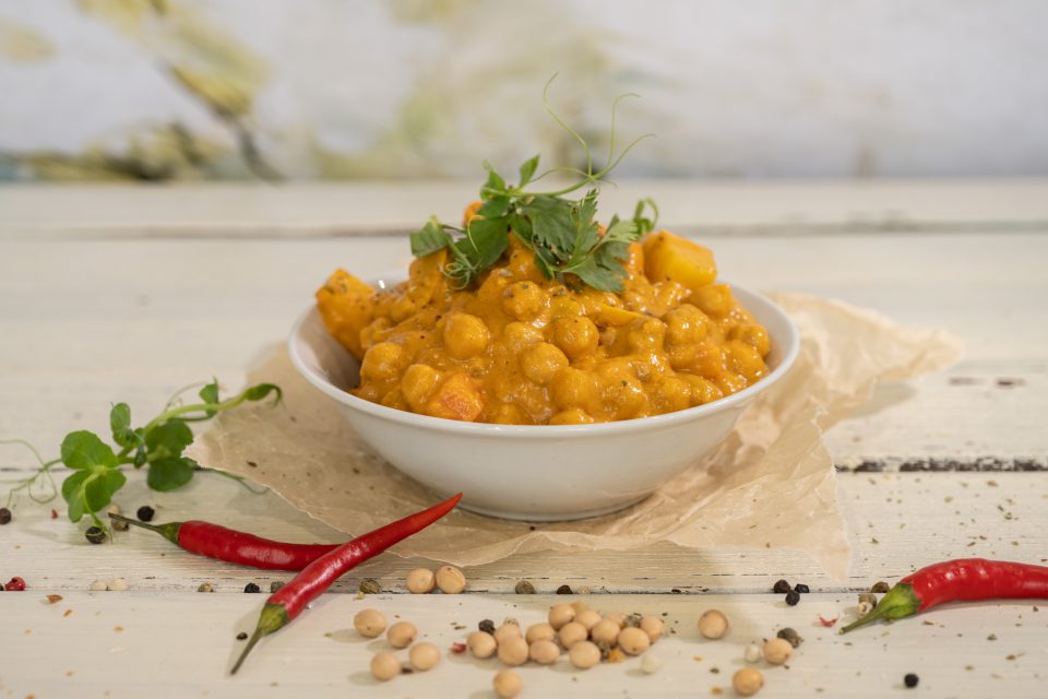 Veganes Kichererbsen-Curry mit Bio-Gebäck