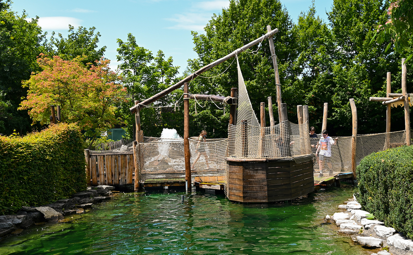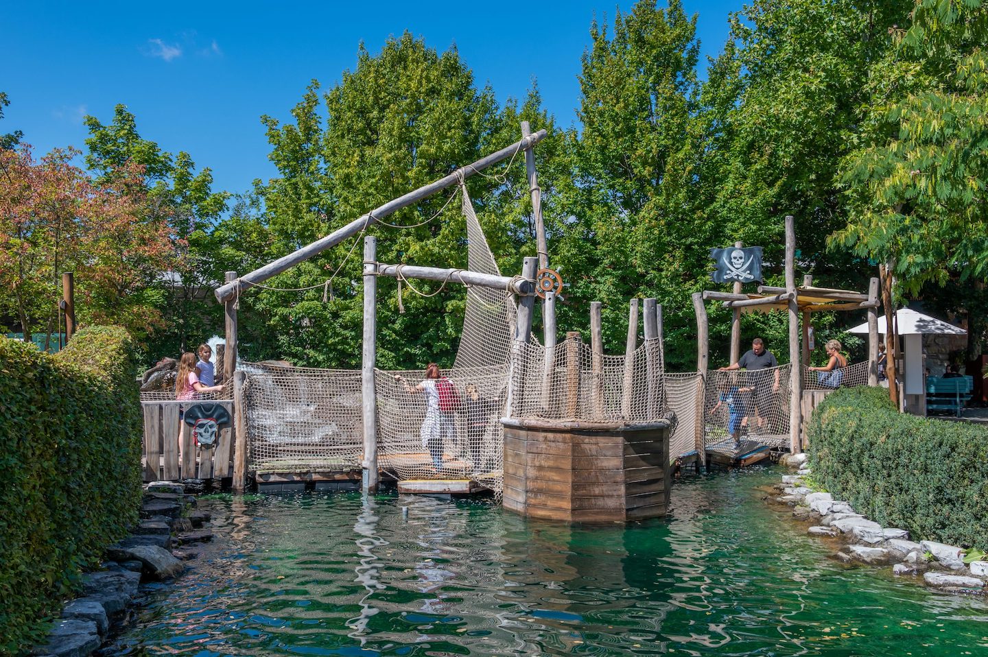 Kalózösvényünk (Seeräuberpfad) egy kihívásokkal teli útvonal. Kelj át egyik partról a másikra, de vigyázz! A barátaid közben célba vehetnek a vízágyúkkal.