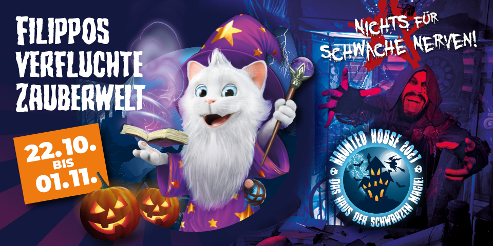 Im Haus der Schwarzen Magie sind dem Spuk keine Grenzen gesetzt! Zauberer, Alchimisten, Hexen und andere Magier vereinen sich in diesem düsteren Haus, um dort ihr Unwesen zu treiben. Empfohlen wird dieses Zusatzangebot für mutige Besucher ab 14 Jahren. Eintrittspreis 3 Euro.