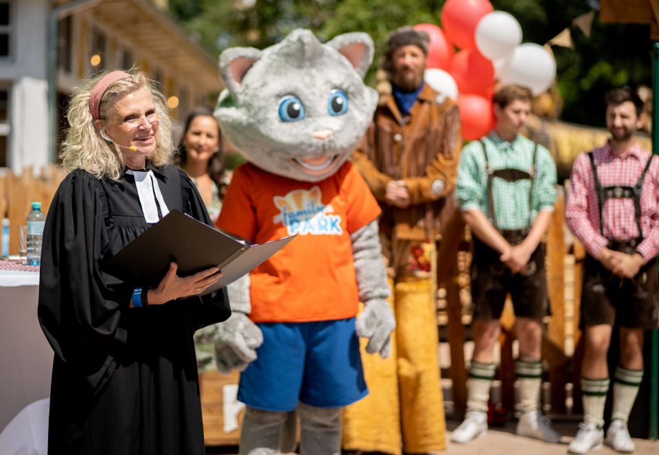 Aber letzten Samstag, dem 9. Juli, war es dann soweit. Im Beisein von Landesrätin Daniela Winkler, zahlreichen geladenen Gästen und den Besuchern des Familyparks wurde die neue Großattraktion Biberburg mit großem Stolz eröffnet und durch die Pfarrerin von Rust, Claudia Schörner, gesegnet.
