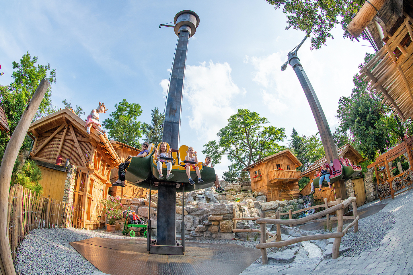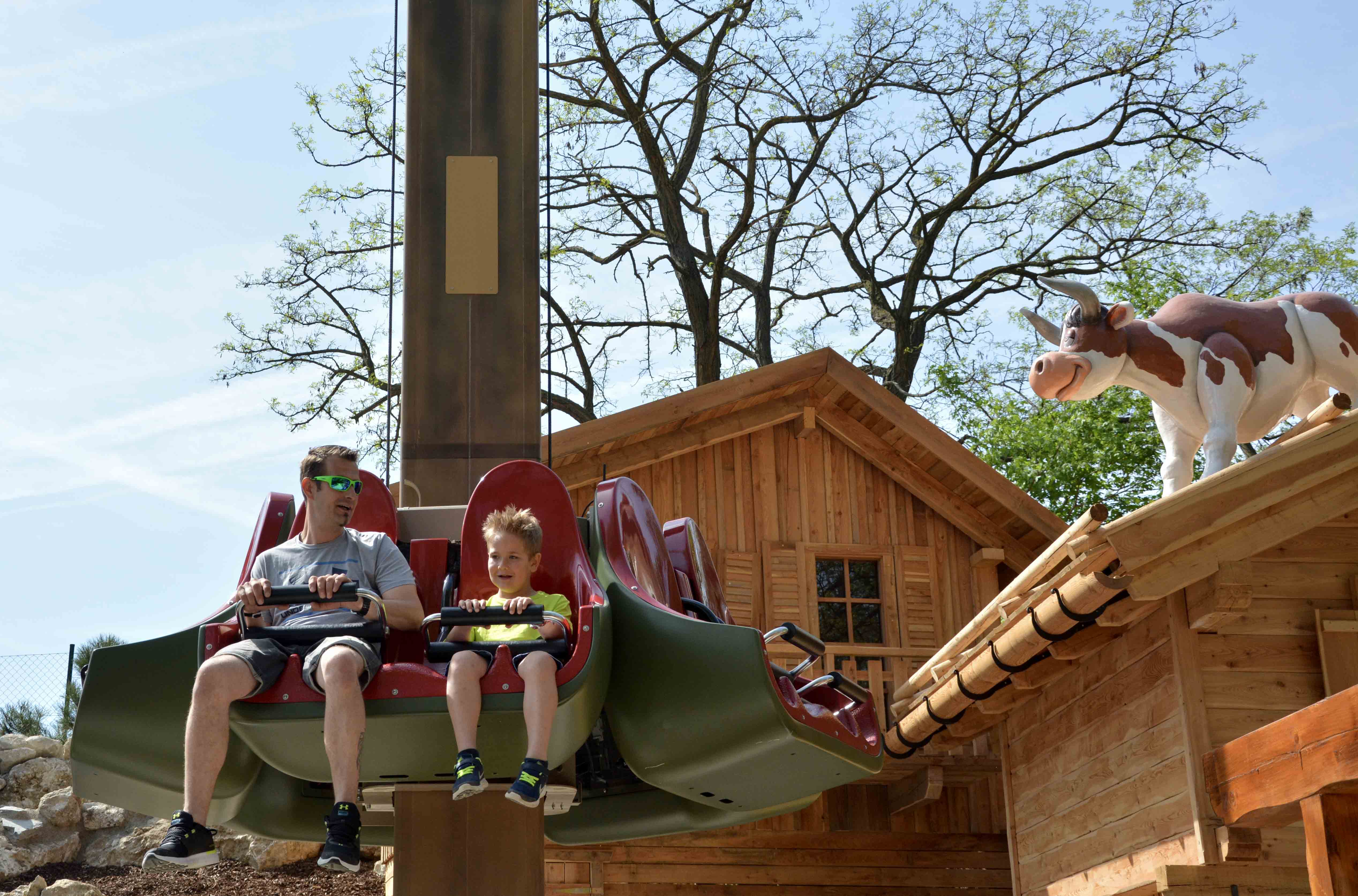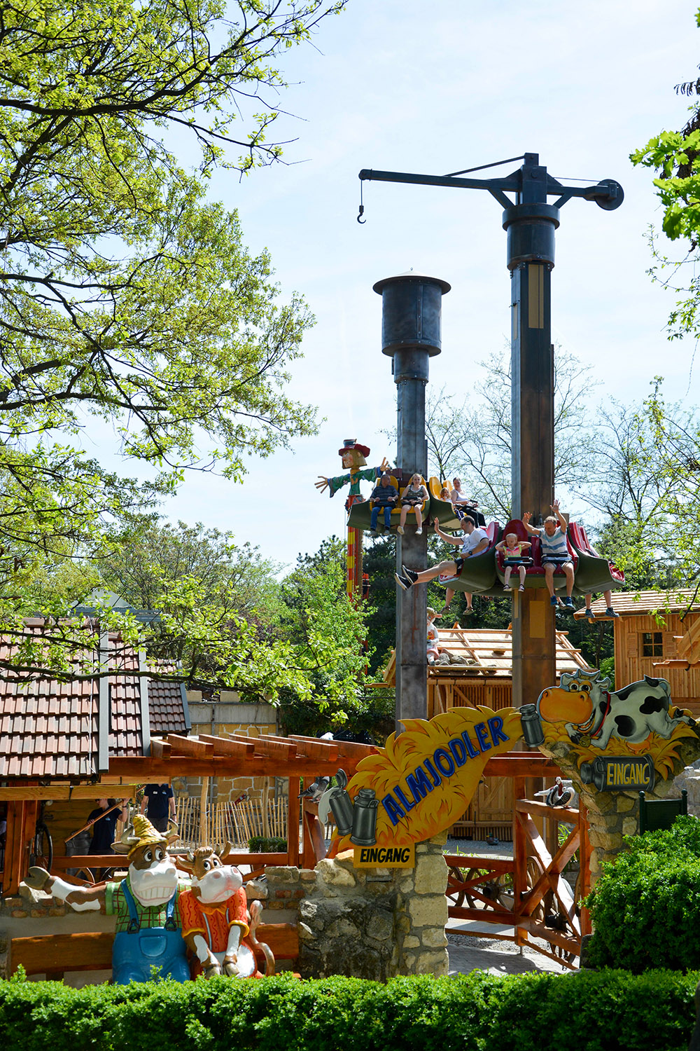 Navštívte našu novú horskú dedinku v tematickom celku Gazdovský dvor a ukážte, že sa naozaj nebojíte! Na atrakcii Almjodler, kde sa voľným pádom spustíte dolu z výšky 8 metrov, sa vám bude možno chcieť i jódlovať!