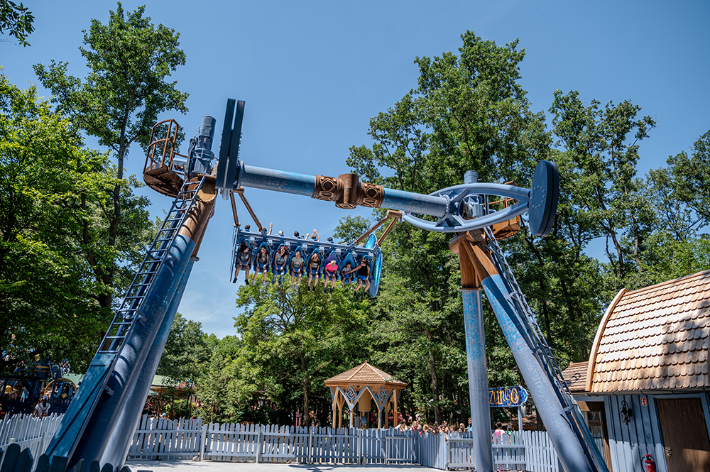 Vzneste sa do závratnej výšky a zažite divokú jazdu na obrovskej hojdačke Azurgo. Obklopení množstvom pestrých, žiarivých dračích vajíčok pocítite na vlastnej koži, aké je to letieť 12 metrov nad zemou. Vedeli ste, že dračie vajíčka chodia na pravidelné hodiny lietania? Mladé draky sa tak už pod krehkou škrupinkou zoznámia s hojdaním vo vzduchu, takže potom nikdy nemajú strach z lietania! Nie je to perfektné?