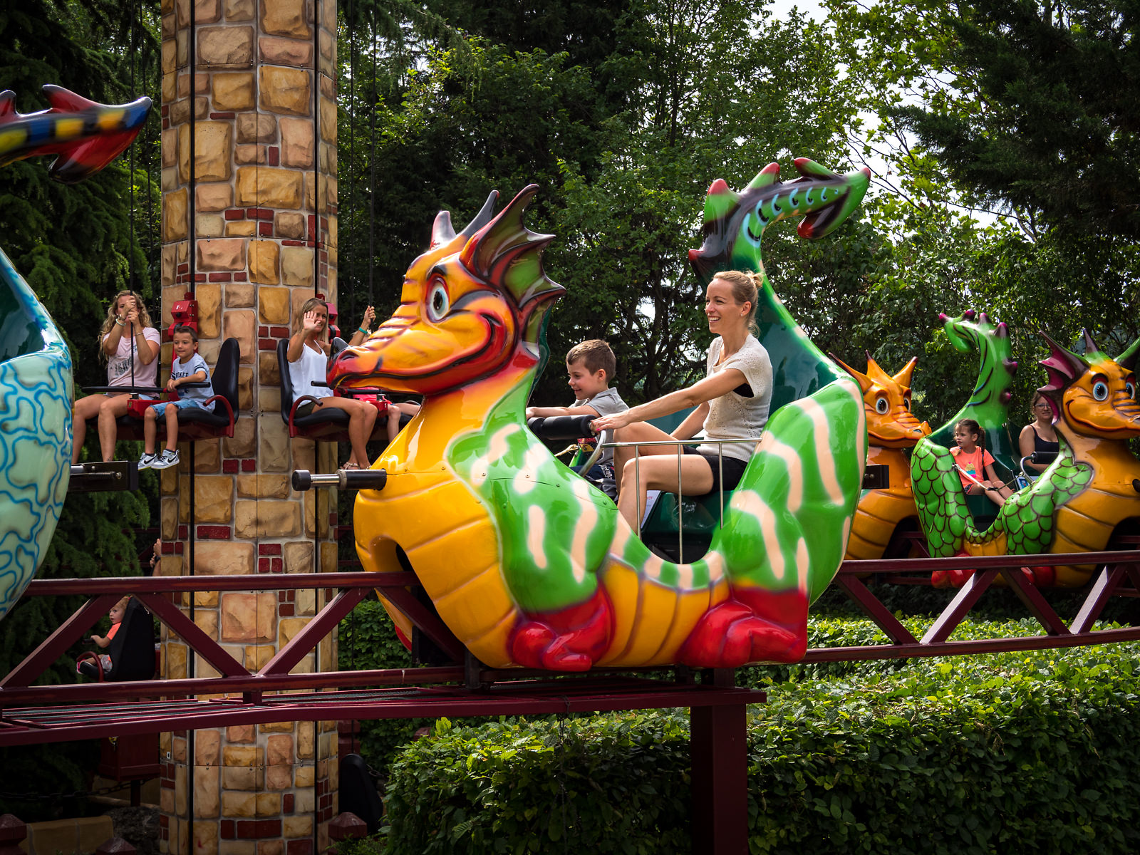 Vysoko nad hlavami ostatných návštevníkov si užijete jazdu ponad jednu z častí Zážitkového hradu. Kto si však myslí, že si trošku oddýchne, ten sa mýli. Aby sa draky dali do pohybu, musíte poriadne šliapnuť do pedálov.
