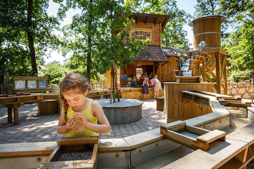 V bani na drahé kamene vládne zlatokopecká horúčka. Rodičia a deti tu môžu v potoku pomocou sitka ryžovať polodrahokamy z vrecka piesku, presne ako za starých čias. Úlovky ako ruženín, fluorit alebo horský krištáľ budú doma peknou spomienkou.