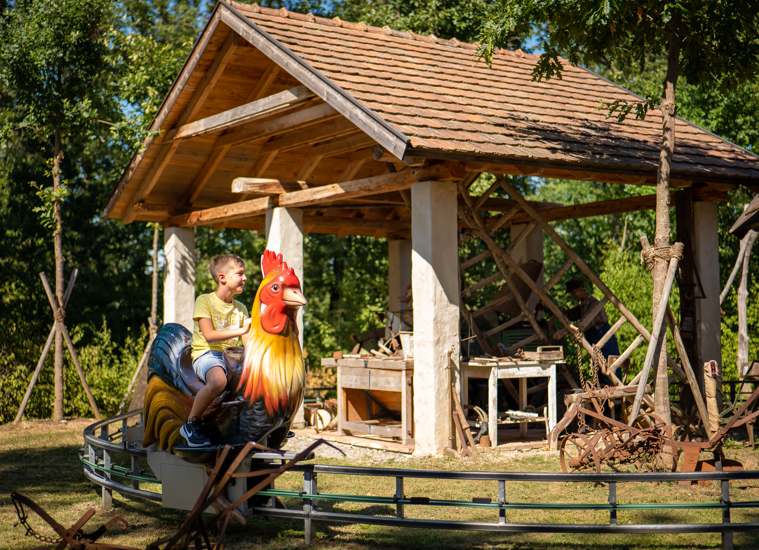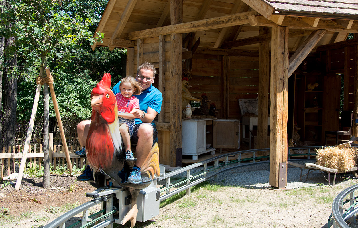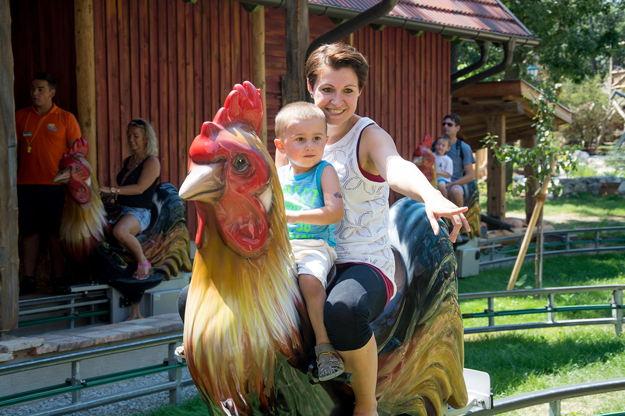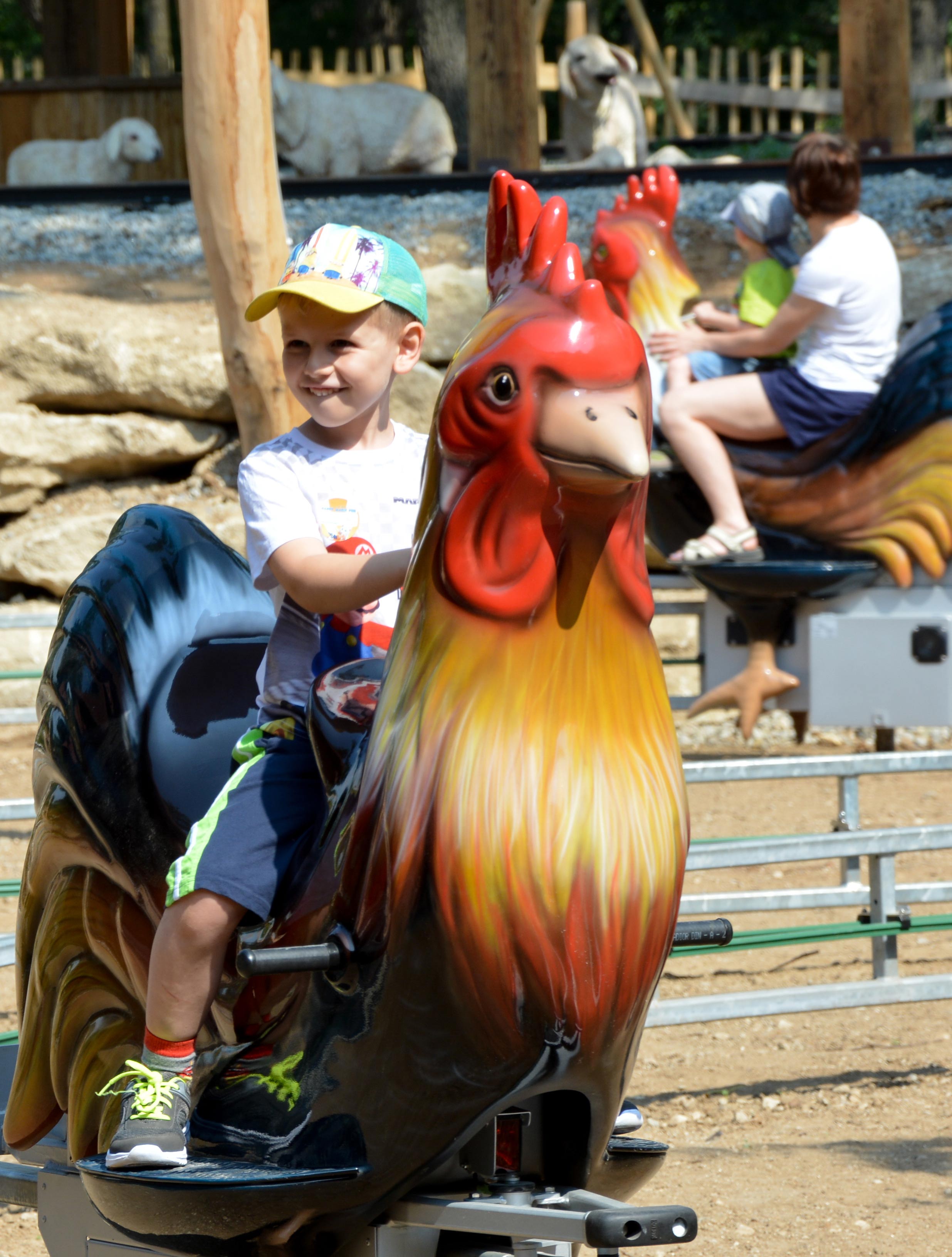 Pri Love na kohúta sa môžu deti a rodičia vydať s kohútom na veselý útek pred pochabou starou mamou na motorke. Okolo hnojiska, cez prístrešok na traktory a dokonca i stredom sedliackej izby sa budete rútiť spolu s vyplašenou hydinou krížom krážom po sedliackom dvore.