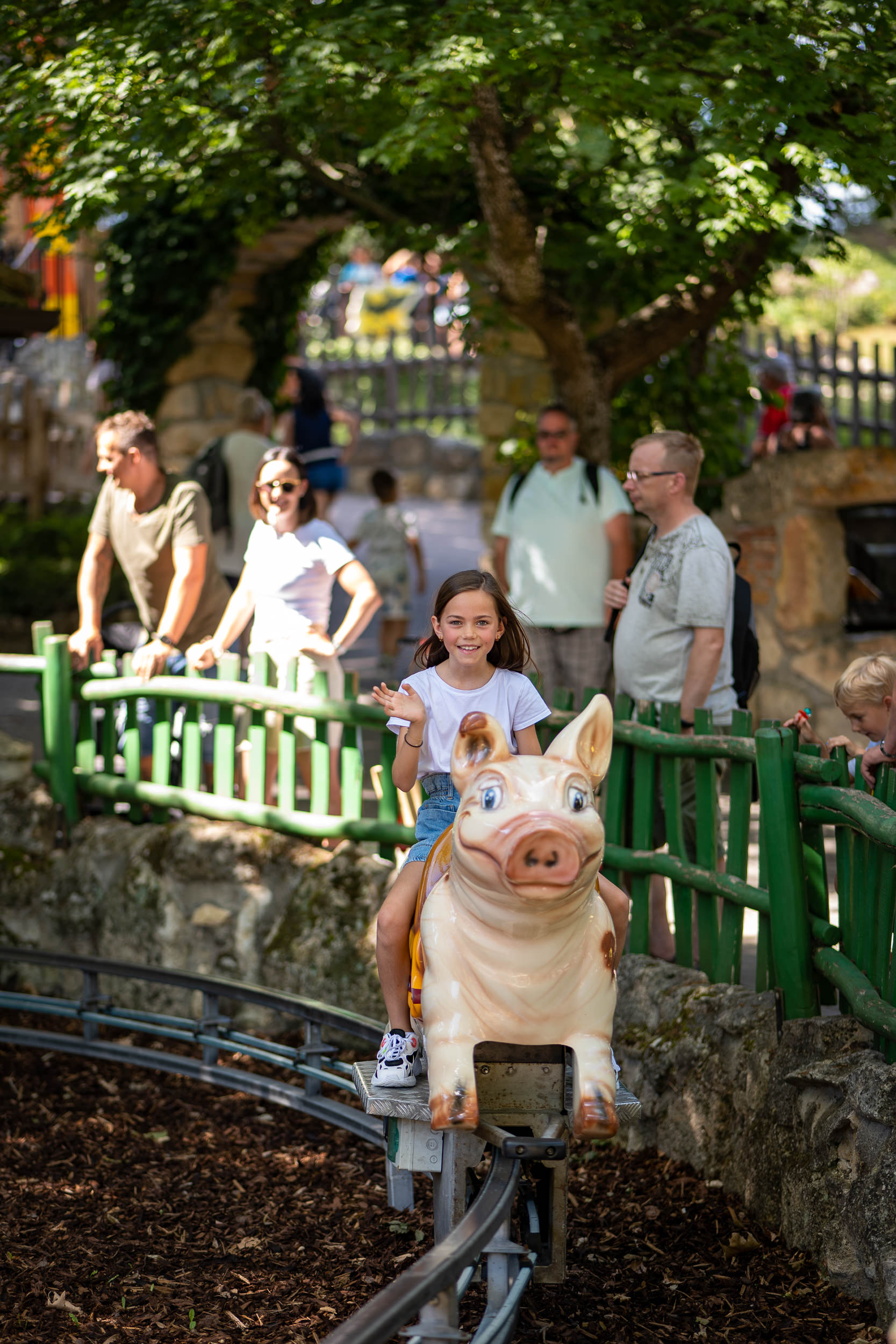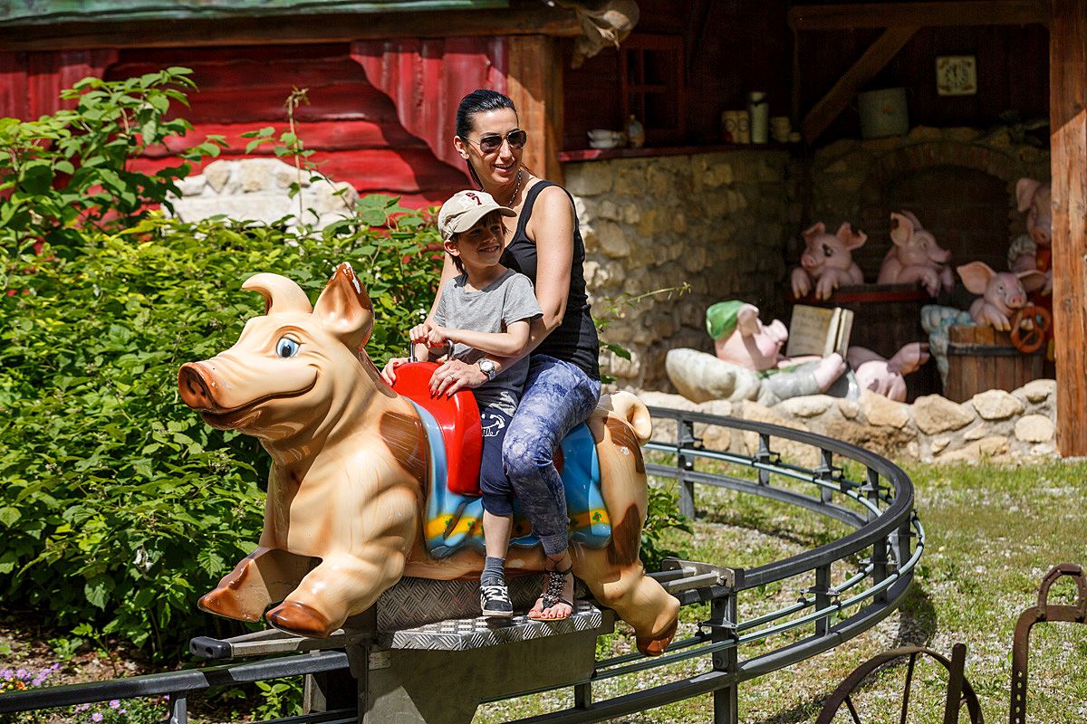 Utiekli nám prasiatka! Rýchlym tempom prejdete okolo spievajúcich chlapcov z gazdovstva, cez malinové kríky a tienisté besiedky obrastené viničom. Držte sa pevne – prasiatka sa s hlasným krochkaním rútia cez naše záhony!